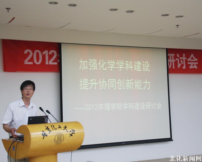为以化学学科为核心全面提升理学院各学科之间的协同创新能力,适应和满足经济社会发展对学科发展的需求,推动学院协调发展和重点突破,6月21日上午,理学院召开以“加强化学学科建设,提升协同创新能力”为主题的2012年理学院学科建设研讨会。理学院党委书记白守礼等学院领导、各学科主要负责人参加会议。理学院段雪院士,材料学院院长杨万泰,规划处副处长张冰应邀参加研讨会。会议由理学院院长李殿卿主持。