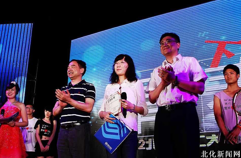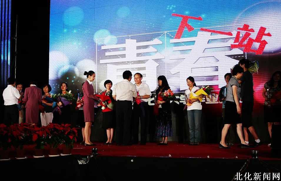 晚会现场,谭天伟校长为志愿服务西部和赴基层就业的三位学生代表颁发纪念证书。任新钢副校长和中国移动朝阳分公司领导共同为2012年毕业文化衫设计获奖的同学颁发获奖证书。晚会还揭晓了“我心中最亮的星”——我校第九届“十佳教师”的评选结果,由广大同学投票选举产生的十佳教师在掌声和鲜花的簇拥下登上舞台,展示了我校名师风采。