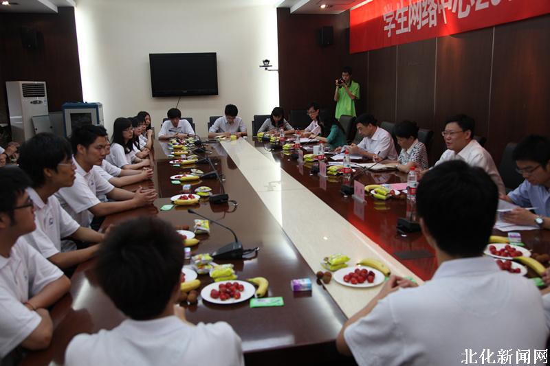 6月26日下午,我校在行政楼203会议室召开学生网络中心2012届毕业成员座谈会。校党委书记王芳、校党委副书记兼副校长任新钢出席座谈会。学生工作办公室主任罗伟、副主任崔春花,信息中心副主任杜昌顺,学生网络中心全体指导老师及2012届毕业成员代表参加了座谈会。会议由罗伟主任主持。
