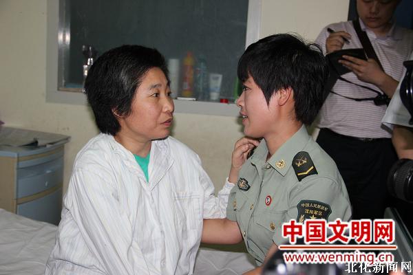 6月28日晚,本网记者、乔安山的孙女乔婷娇、中国学雷锋基金管委会代表、北京化工大学雷锋精神研究会师生代表等看望泰安好妈妈王玉萍。乔婷娇对玉萍妈妈脱口而出的一声“妈妈”,让这对从未谋面心已相系的“母女”喜极而泣。中国文明网张青玲摄
