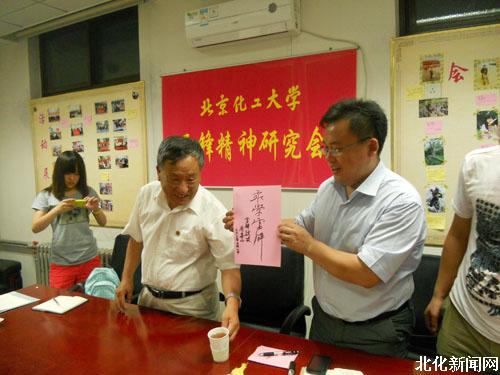 乔安山为北京化工大学雷锋精神研究会现场题词,寄语青年学生“永学雷锋”