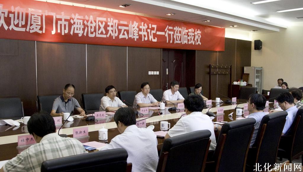 7月4日下午,厦门市市委常委、海沧区委书记郑云峰率领厦门市海沧区生物医药代表团一行6人来我校交流访问。我校副校长王峰出席座谈会。高新院院长屈一新,生命学院院长袁其朋、生命学院党委书记张丽叶,及科技处、生命学院、高新院、厦门生物产业研究院的相关负责人和部分教师参加了座谈。