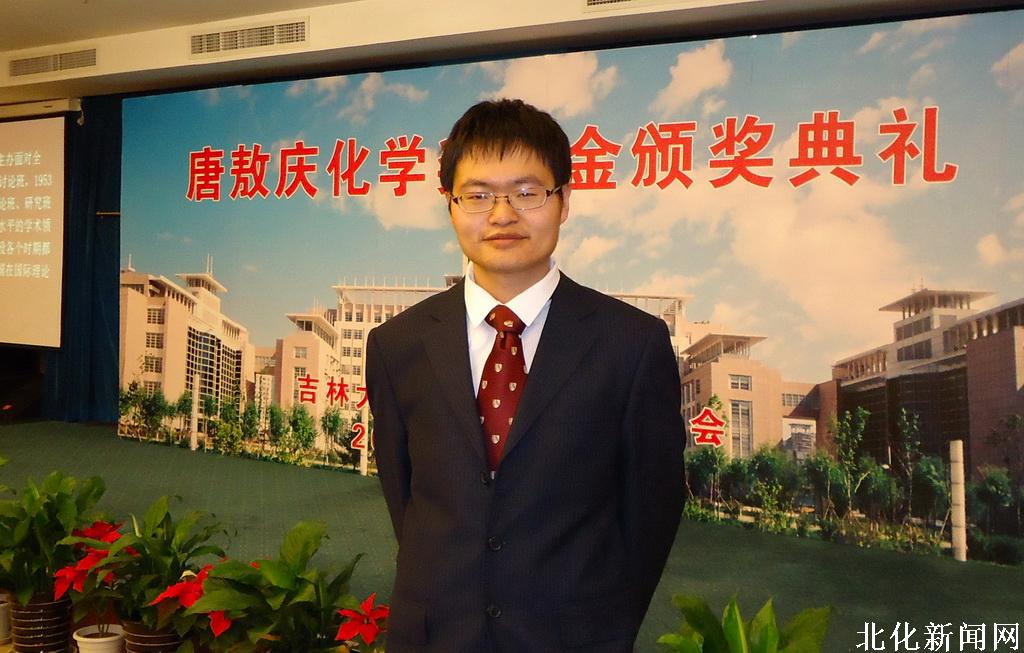 图为闫东鹏在2011年唐敖庆化学奖学金颁奖现场留影