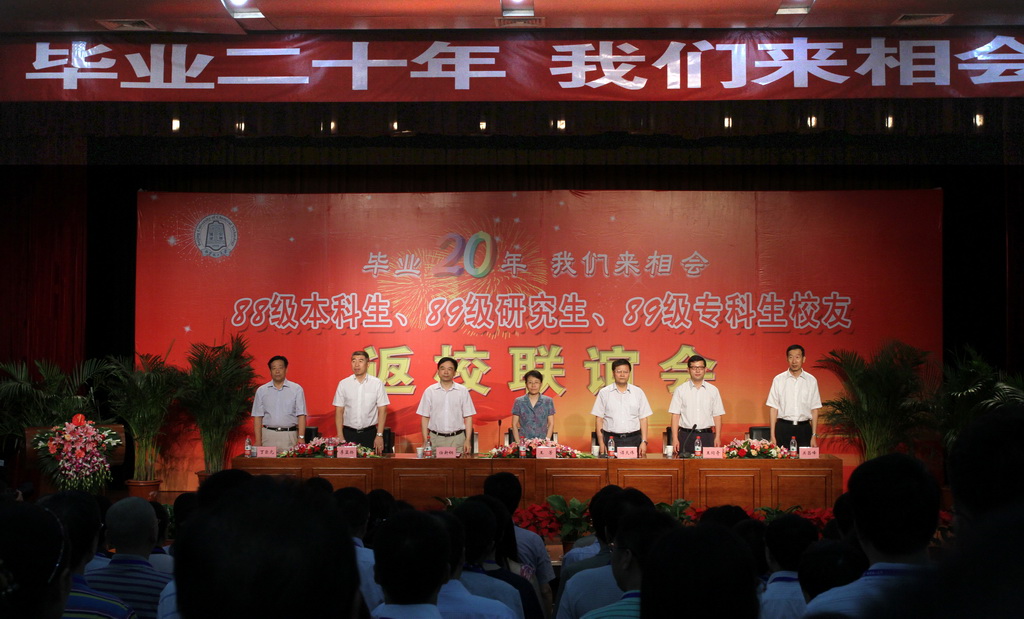 7月14日上午,北化校园欢声笑语,彩旗飘飘,洋溢着欢乐与喜庆。我校近400名88级本科生、89级研究生、89级专科生校友重返校园,欢聚一堂。“毕业20年,我们来相会”返校联谊大会在科学会堂举行。校党委书记王芳、校长谭天伟出席会议并讲话,校党委副书记兼副校长任新钢、副校长李显扬、校党委副书记兼纪委书记关昌峰,原副校长丁巨元出席。大会由校党委副书记、校友总会常务副会长王同奇主持。