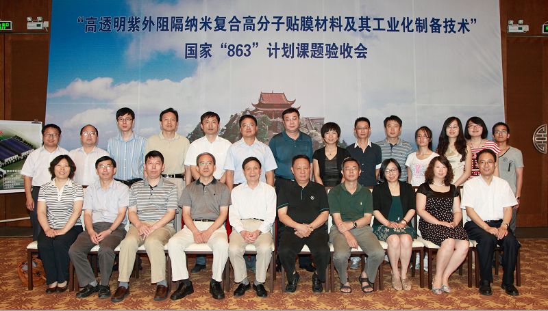 7月19日,科技部高技术研究发展中心组织专家在安徽省池州市对北京化工大学、安徽省池州市英派科技有限公司、北京中超海奇科技有限公司联合承担的国家“863”计划课题“高透明紫外阻隔纳米复合高分子贴膜材料及其工业化制备技术”进行了现场验收。验收专家组由中南大学黄伯云院士,南京工业大学欧阳平凯院士,“863”领域主题专家浙江大学杨辉教授,“973”首席科学家、中国科技大学俞书宏教授,国家工业领域节能减排专家组成员、中国建材集团教授级高级工程师颜碧兰组成。科技部高技术研究发展中心副主任王琦安、材料处处长史冬梅和主管张芳出席了验收会。安徽省池州市副市长陈冰冰、安徽省科技厅高新技术发展及产业化处处长李林等当地政府官员,以及课题组和公司部分成员参加了验收会。