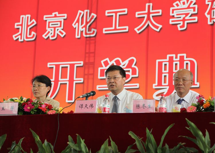 开学典礼在庄严的国歌声中拉开帷幕。校长谭天伟致辞,他代表全校师生员工对2012级研究生新生表示热烈欢迎和诚挚问候,介绍了我校的发展历程、科研现状。他指出,学校坚持在“大化工”领域实施“大开放”战略和协同创新,解决国家经济、社会发展重大需求的能力进一步增强。他通过生动的事例对研究生新生提出殷切希望:治学要严谨诚信,做研究要尊重他人的劳动和权益,决不可沽名钓誉,更不能将他人的成果据为己有;为学要敢于创新,要有高处不胜寒的勇气,要做到努力拼搏、废寝忘食,更要有更换思路的勇气和魄力。他还希望广大研究生能够激发科研兴趣,培养创新能力,养成良好的学术态度,扎实学习、诚信科研,杜绝学术造假,开拓创新、勇担重任,努力成为国家需要的拔尖创新人才!