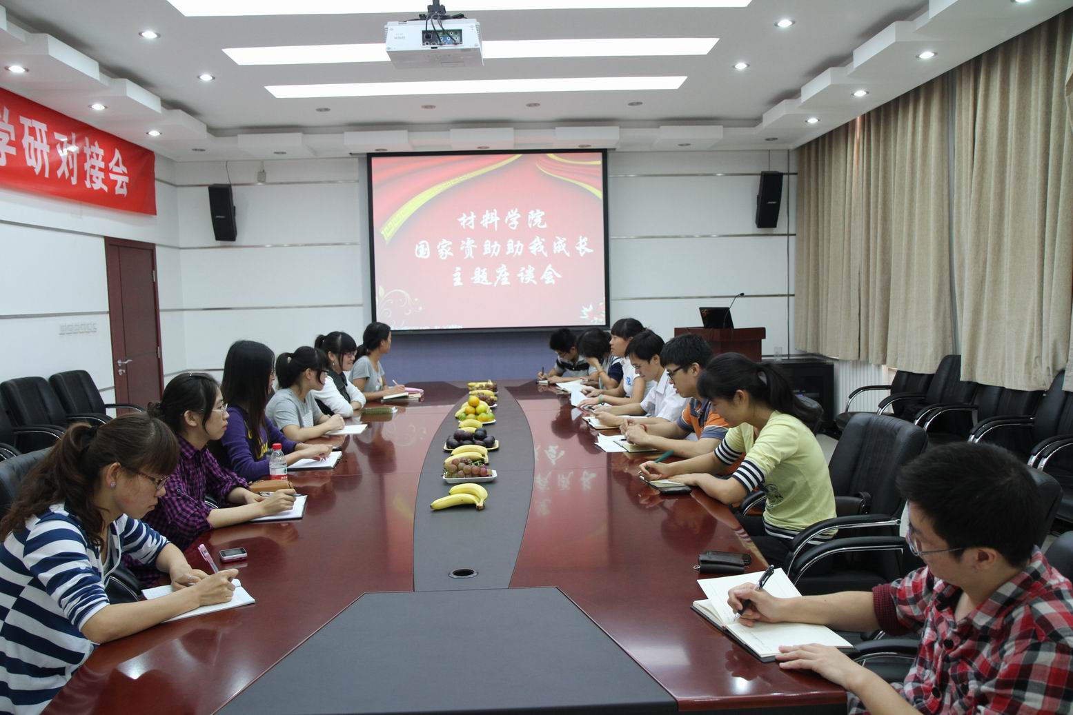 9月6日中午,为全面宣传资助政策,材料学院召开了主题为“国家资助助我成长”座谈会。材料学院党委副书记李承明、学工办朱笑辰老师,以及材料学院2009、2010级全体辅导员和受资助学生代表参加座谈会。