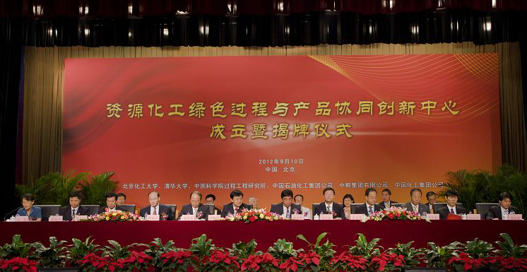 9月10日上午,由北京化工大学、清华大学、中国科学院过程工程研究所3家高校和科研院所携手中国石油化工集团公司、中粮集团有限公司、中国化工集团公司3家龙头企业组建的“资源化工绿色过程与产品协同创新中心”成立暨揭牌仪式在北京化工大学科学会堂举行。该中心的组建是化学工业行业深入贯彻落实胡锦涛总书记在庆祝清华大学百年校庆上关于协同创新的重要讲话精神,实施教育部、财政部“高等学校创新能力提升计划”(简称“2011”计划),紧密围绕“国家急需、世界一流”的战略目标,在大学、科研院所和行业龙头企业之间开展协同创新的重大举措。