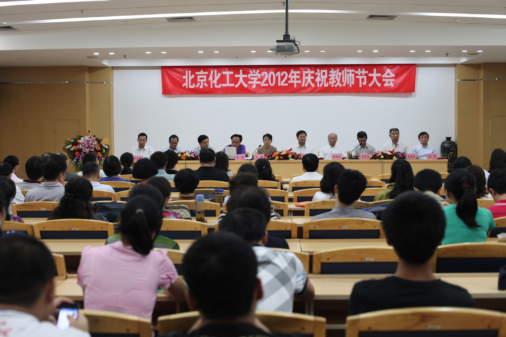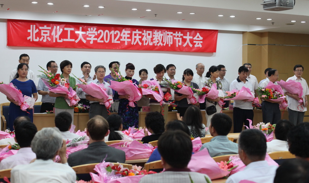 党委书记王芳宣读了2012年《关于表彰北京化工大学优秀教师、优秀教育工作者的决定》。副校长王贵宣读了获国家级、省部级主要荣誉及奖励的教师名单。党委副书记兼副校长任新钢宣读2012年北京化工大学从教年满30年教职工名单。全体校领导为获得2012年北京化工大学优秀教师、优秀教育工作者的教师、从教年满30年的教职工颁发荣誉证书,学生代表向获奖教师鲜花。