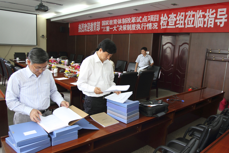 9月25日,教育部直属高校国家教育体制改革试点项目及“三重一大”决策制度执行情况检查工作组一行八人莅临我校。检查组由复旦大学党委副书记陈立民和咨询委员、国家图书馆党委书记、常务副馆长詹福瑞任组长,对我校开展为期两天的检查指导工作。