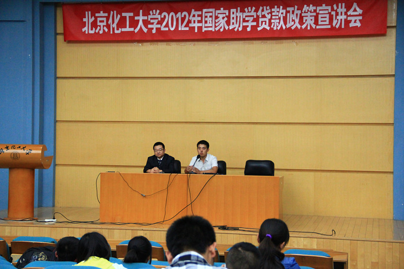为实践国家资助体系对家庭经济困难学生的助学政策,让同学们进一步了解国家助学贷款的相关政策以及办理流程,我校于9月27日及28日,在北校区多功能厅及东校区学术报告厅分三场举办了2012年国家助学贷款政策宣讲会。中国银行消贷经理王婧、中国银行北京樱花东街支行信贷部金勇经理参加会议并为同学们做具体政策介绍。我校学生资助办公室副主任黄晓一主持了本次宣讲会。