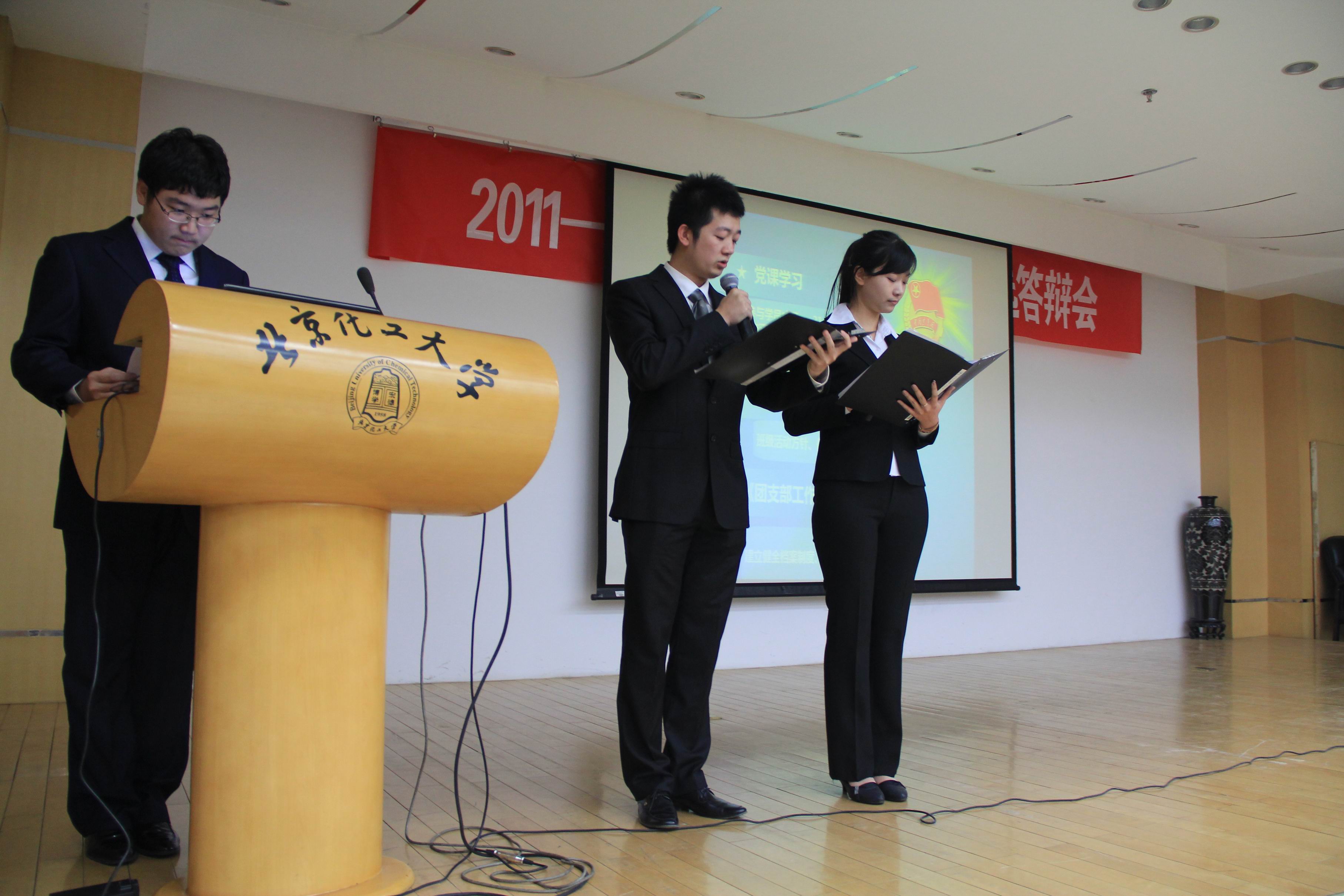 经由学院推荐,本次答辩会共有来自本科生、研究生的17个班级参加评审。各班代表从班级学风建设、党团活动、班级凝聚力建设、实践活动等方面对班级工作进行了总结,并接受现场评委提问。实验1101班在班级全体学生的共同努力下形成了“学、比、赶、帮、超”的优良学风,班内同学在专业学习,参与科研创新等方面表现优异,班级同学获得奖学金比率达100%。英语1104班充分利用专业优势,多次举办英语辩论赛、英语角、英语训练营等活动,促进班级同学对专业知识的掌握和提高。计科1004班将现代互联网技术积极应用到班级建设中,借用飞信、QQ群、人人网、微博等平台服务同学成才成长。工商1002班积极推进宿舍文化建设,形成了各具特色的宿舍文化,展示了班级特点和良好风貌。最终,实验1101、英语1104等十个班集体被评为北京化工大学2011-2012学年红旗班集体。
