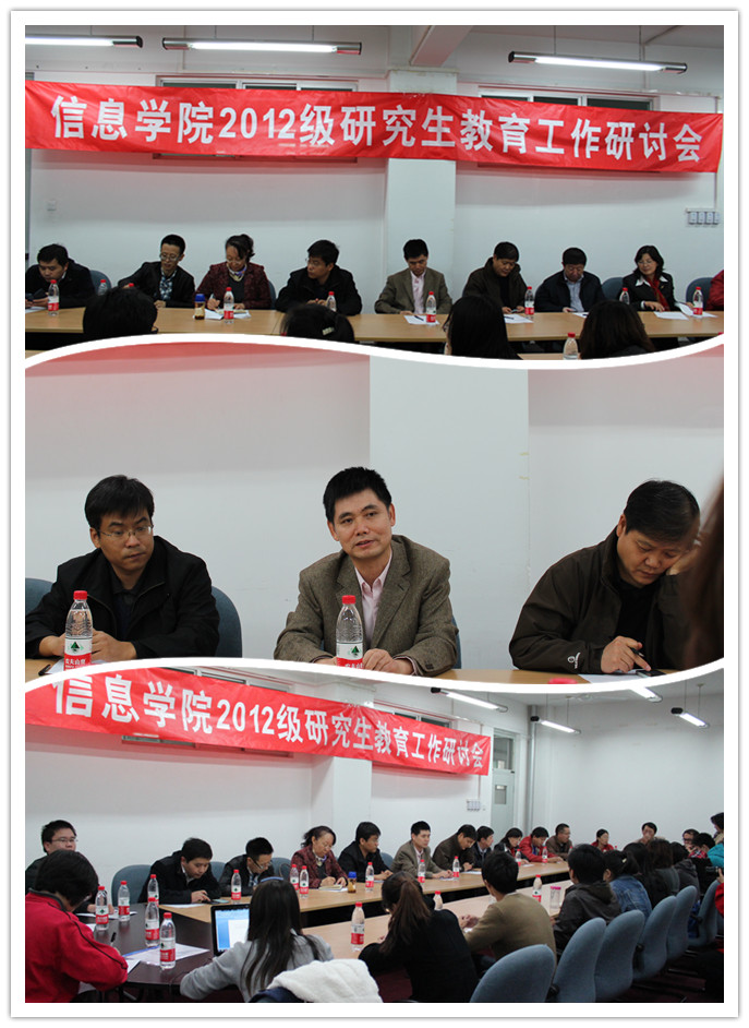 10月28日下午,信息学院在北校区召开2012级研究生教育工作研讨会及导师组会。研究生院副院长许海军,信息学院全体院领导、学科主任、研究生导师组组长、导师代表和研究生代表参加会议。
