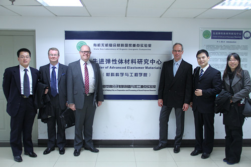 Relph副校长一行在参观先进弹性体材料研究中心和超重力工程研究中心后,对我校的科研能力表示高度认可。在随后的会谈中,陈冬生副校长对Relph副校长一行表示欢迎,希望两校能够加强校际合作,促进两校交叉学科的融合和发展。Relph副校长认为,为促进双方的高效合作,可以将双方教授间已有合作作为切入点,在此基础上深化联合培养等合作项目。Parfitt副校长介绍了南澳大学与澳大利亚工业届、政府间在化学、材料与能源方面开展的合作。双方还就教授科研合作、年轻教师培养、学生联合培养等方面进一步交换看法,并一致希望能够尽快签署合作协议。