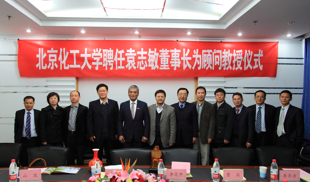 11月5日,我校在会议中心会议室举行聘任金发科技股份有限公司董事长袁志敏为我校顾问教授仪式。金发科技股份有限公司董事长袁志敏、校长谭天伟出席。人事处处长李文中、研究生院常务副院长曹兵、学工办主任罗伟,化工学院党委书记山岚、材料学院党委书记李齐方,天津金发科技股份有限公司总经理陈国雄等参加仪式。