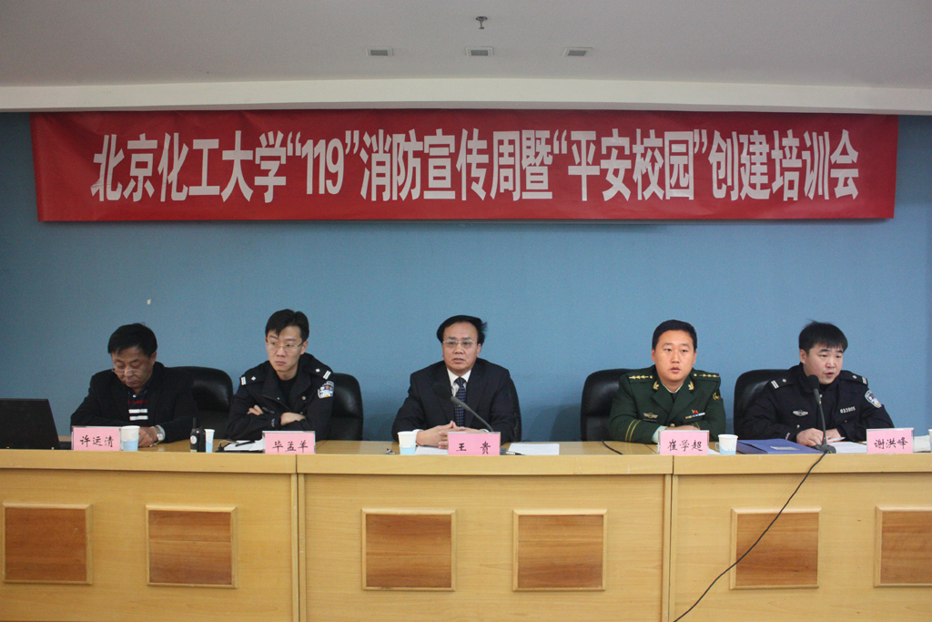 11月7日上午,我校在中心会议室召开围绕学校“十八大”期间安全保卫及“119”消防宣传周、“平安校园”创建的部署培训会。王贵副校长出席并主持会议。各学院行政副院长、分党委副书记、安全干事,各部、处及校直属单位安全负责人,北化大投资有限公司领导及下属企业安全负责人,后勤服务集团领导及各中心主任,保卫处全体人员参加此次培训会。