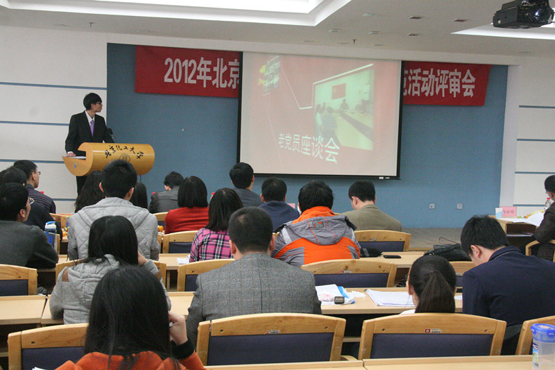 评审会采用视频展示、现场答辩的形式。评审过程中,参评党支部通过播放支部共建视频材料,详实生动地展示了过去一年在支部共建活动中取得的成果。如化工学院本科生低年级党支部和昌平区公安消防支队十三陵中队党支部系统开展结对共建活动,把部队的优良作风融入到支部建设中,支部成员展现出的飒爽英姿给在场的党员留下了深刻的印象。机电学院2010级第二党支部则利用每周休息时间深入海淀区残疾人联合会聋哑儿童康复中心,与那里的聋哑儿童一起开展各类丰富多彩的活动,用自己真诚的爱心温暖了孩子们稚嫩的心灵,孩子们脸上洋溢的天真笑容让在场的党员无不为之动容。