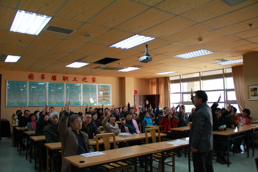 张建文馆长介绍了图书馆考核工作领导小组成员,并讲解2012年教职工考核方案草案。草案是在广泛征求图书馆教职工意见的基础上,由各部室主任和图书馆领导讨论形成。到会全体教职工一致举手表决通过草案。