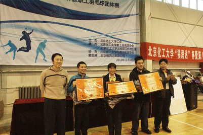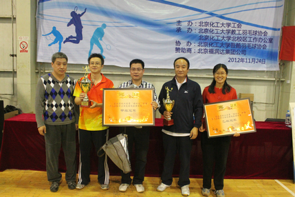 闭幕式上,校工会常务副主席苏建茹老师介绍了本次比赛赞助方福润达公司与我校开展的交流合作情况。福润达公司总经理邱斌表达了与我校继续加强合作交流的愿望。北区办副主任于景华老师介绍了羽毛球场地地胶铺设情况并对赞助地胶的单位和个人表示感谢。比赛裁判长、校教工羽毛球协会秘书长郭亚臣老师宣布比赛成绩。与会领导颁发奖状和奖品,并为友情参赛的福润达公司代表队颁发了优胜奖杯。校教工羽毛球协会会长袁其朋教授讲话,他希望全校羽毛球爱好者能够积极参与羽毛球运动,切实增强个人体质,为健康工作、健康生活提供有力的保障。