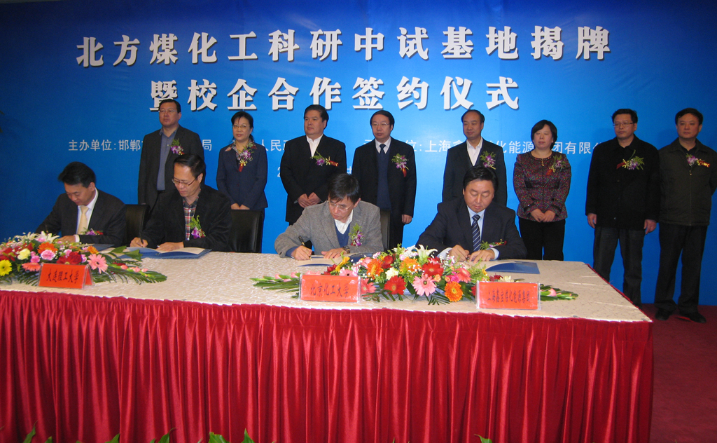 11月28日上午,北方煤化工科研中试基地揭牌暨校企合作签约仪式在邯郸市赵都大酒店举行。北京化工大学、大连理工大学、同济大学、天津大学、河北工业大学等十所高校与上海鑫宝煤化能源集团有限公司进行了集中签约。