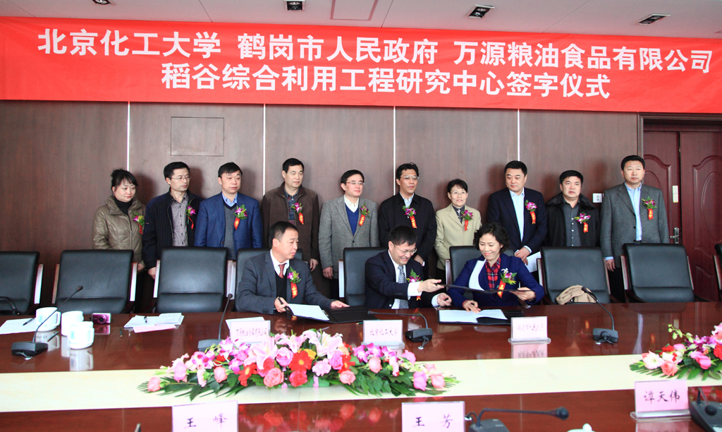 王芳书记致辞。她认为,鹤岗市在能源与粮食方面有得天独厚的优势,而我校在科研与科研成果转化方面具有雄厚实力,并且十分乐于利用自身强项“服务国家经济,服务地方和区域经济,服务企业”。当今世界城市发展面临能源、环境、粮食三大问题,而“稻谷综合利用工程技术研究中心”的建立正是为解决这样的问题搭建平台。她指出,“无论对于鹤岗市、万源公司和北京化工大学来讲,‘稻谷综合利用工程技术研究中心’的建立都是一举多得的好事”。她强调,今后我校将全力支持研究中心的运作,使研究中心真正满足“鹤岗市需求的,万源需要的,和学校想做的”的要求。