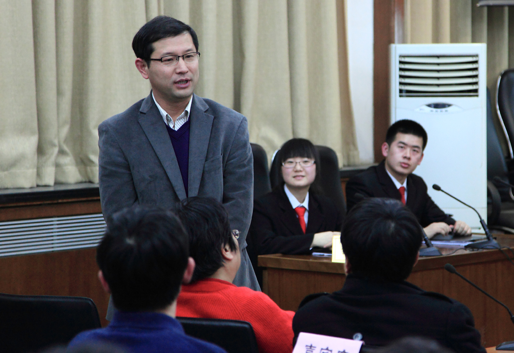 统战部部长任世雄,马克思主义学院常务副院长、直属党支部书记刘玲,党委宣传部副部长姚庆峰,文法学院党委副书记付国柱,法律系主任薛长礼、教师代表,以及80余名师生观摩此次模拟庭审。
