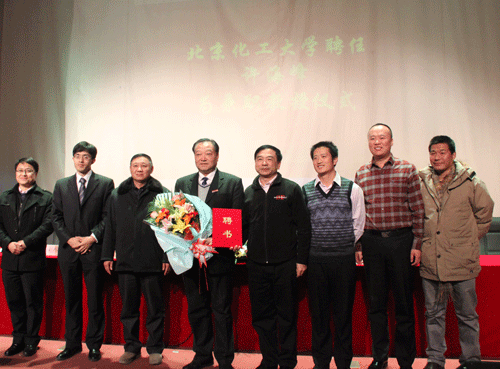 文法学院副院长姚望介绍了许海峰教授的履历。学生代表为许海峰教授献花并佩戴校徽。任新钢副校长为许海峰教授颁发兼职教授聘书并致辞。他代表学校对许海峰教授被聘为我校兼职教授表示欢迎,希望许海峰教授能经常来我校交流与授课,积极参与到我校的人才培养工作中,推动我校社会体育学科领域的研究与发展。许海峰教授表示很高兴能够成为北京化工大学的兼职教授,希望能够与化工大学建立密切合作,并在学生培养方面做出自己的贡献。