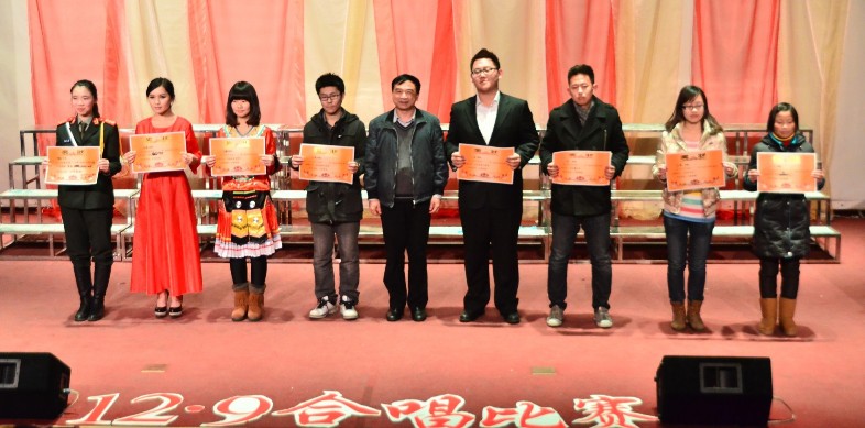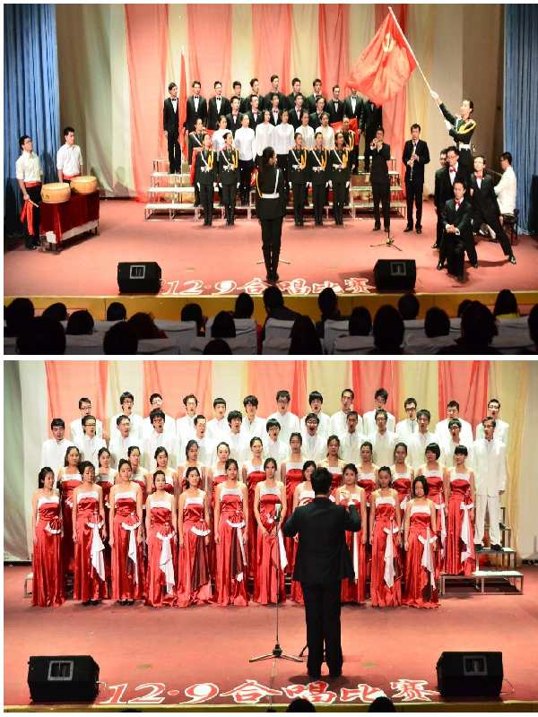 12月7日晚,合唱比赛在北区多功能厅举行。各学院分别选送一支代表队参赛,每支队伍演唱必选和自选两首曲目。同学们从舞台效果、编排创意等几个方面做了精心的准备,为台下观众带来一场精彩的视觉盛宴。比赛期间,校合唱团成员们为同学们献上三首表演曲目,合唱团指导老师马梅对本次比赛进行了精彩点评。最后,郭奋主任和学生工作办公室罗伟主任分别为三校区演讲、征文的获奖选手颁奖,任新钢副校长为合唱比赛的获奖团队颁发奖状。
