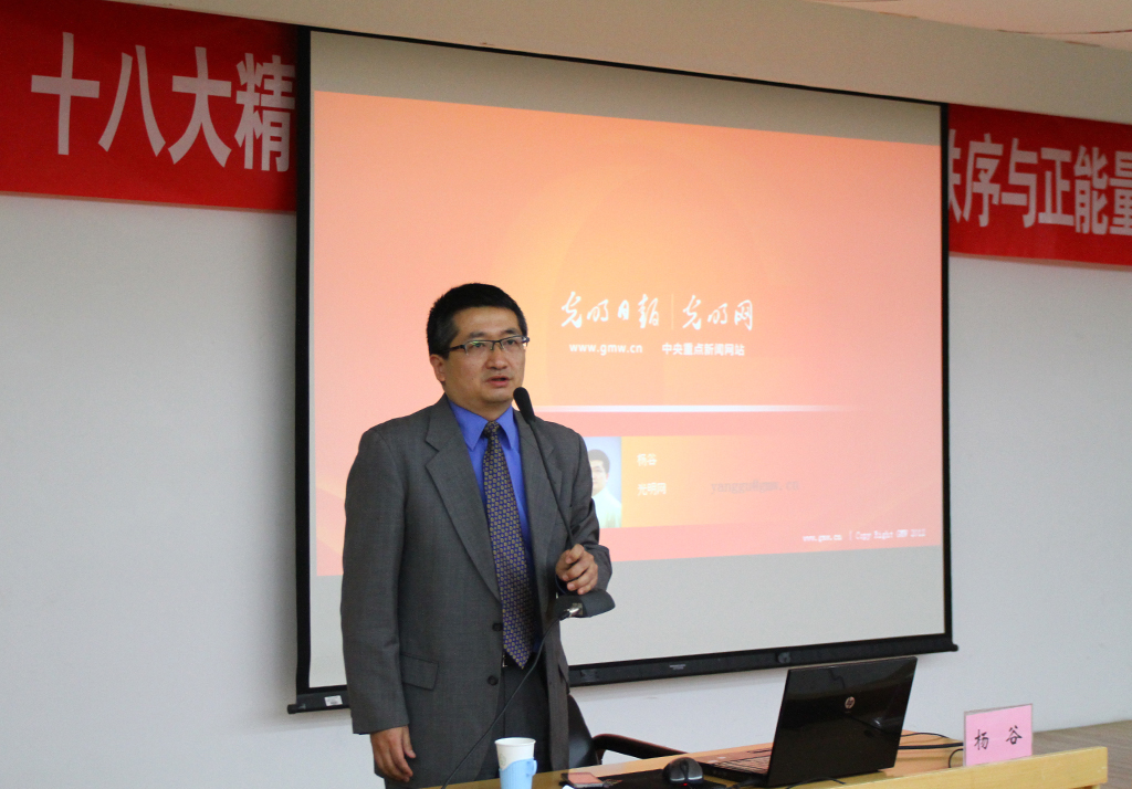 “吃了吗?”、“长胖了!”,几十年来,我们日常生活中富有时代特色的问候语在不经意间发生着变化,由之我们可以窥见到走在复兴之路上的中华民族所取得的伟大成就。12月11日晚,我校逸夫会议中心多功能厅,光明网总经理杨谷在为广大学生党员带来的题为“十八大精神专题报告会——复兴之路上的秩序与正能量”报告会上,这样开始了他的讲述。