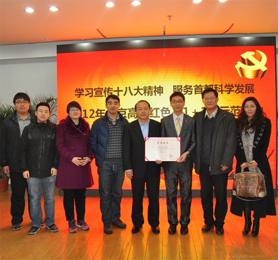 市委教育工委领导与我校获奖党支部学生代表和老师合影留念