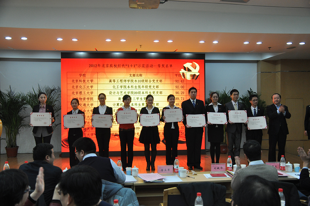 12月26日,“学习宣传十八大精神,服务首都科学发展”2012年北京高校红色“1+1”示范活动展示评审会在我校会议中心多功能厅隆重举行。市委教育工委副书记唐立军,市委组织部、宣传部、社会工委、农村工委、首都文明办等部门领导出席评审会并担任评委。我校党委副书记兼副校长任新钢出席会议。各高校红色“1+1”活动主管部门的负责人、新闻媒体以及参评学生党支部代表约200余人参加此次展示评审会。