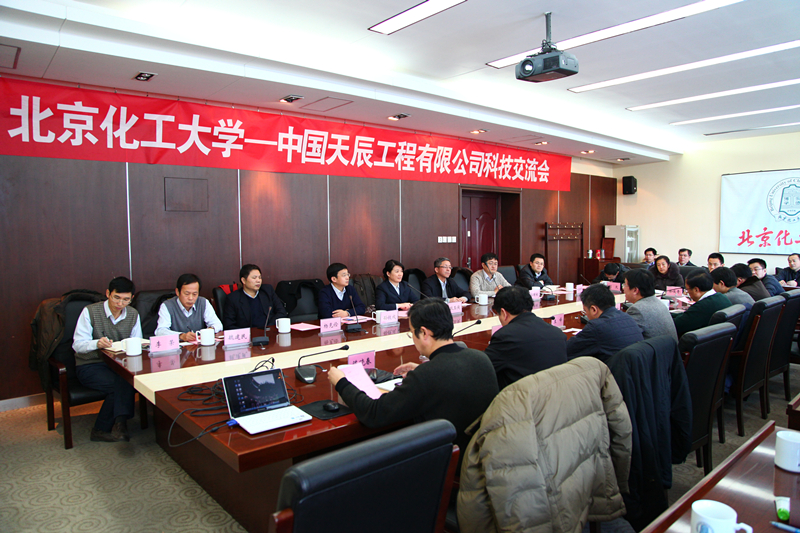1月8日,北京化工大学-中国天辰工程有限公司科技交流会在我校举行。中国天辰工程有限公司总工程师耿玉侠、总经理助理兼计划财务部部长孙铁成等一行12人到访我校。我校副校长王峰出席并讲话。学校相关部门负责人及教授代表共20余人参加交流会。