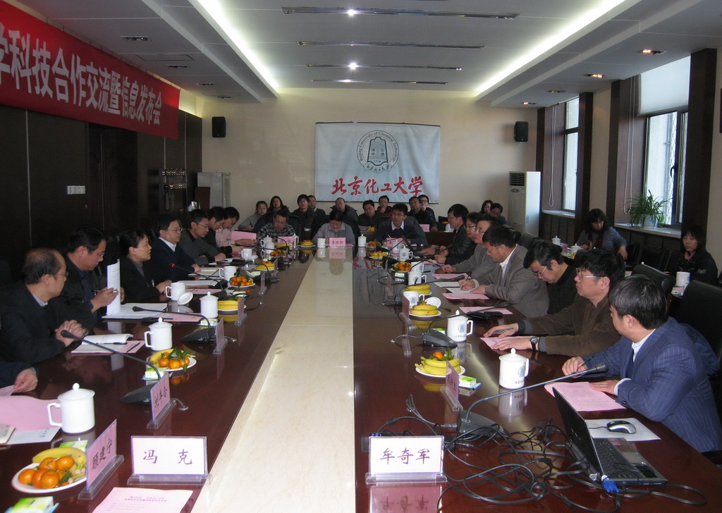 1月9日上午,燕山石化—北京化工大学科技合作交流暨信息发布会在行政楼203会议室举行。校长谭天伟出席会议,科技处处长杨小平,相关学院、部门负责人及教师代表。会议由副校长王峰主持。