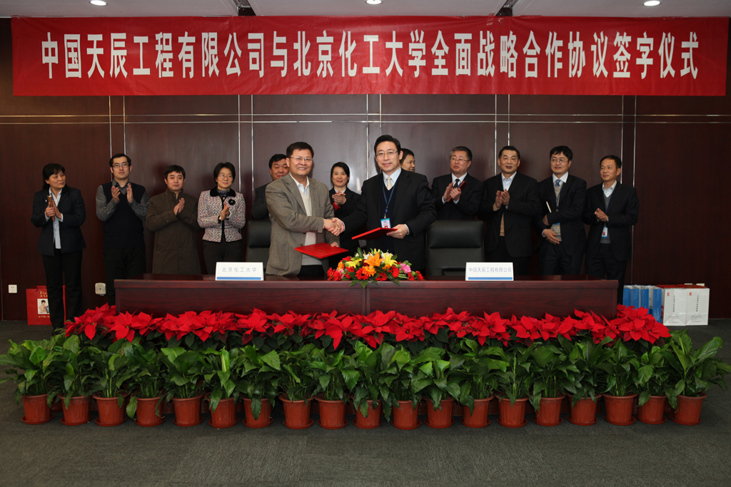 1月15日下午,谭天伟校长率团访问中国天辰工程有限公司,并签署校企双方的全面战略合作协议。校办、教务处、科技处、高新院相关部门负责人陪同前往。