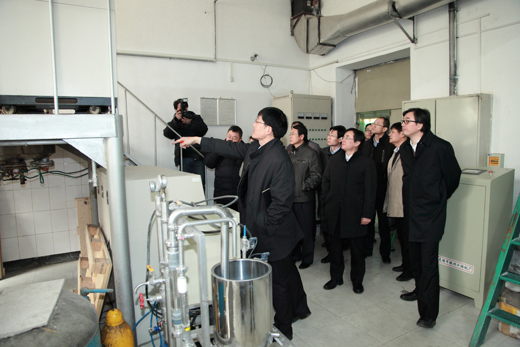 在王峰副校长的陪同下,罗强总经理一行参观了学校化工资源有效利用国家重点实验室。
