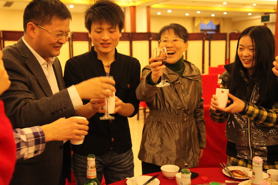 除夕夜,校领导一行来到招待餐厅和清真餐厅与寒假留校过春节的学生共进年夜饭,欢度除夕。党委办公室、校长办公室、学生工作办公室、研究生院、保卫处、后勤服务集团和各学院的负责人一同与留校学生共度除夕。学校后勤服务集团和学生工作办公室为留校学生准备了丰盛的年夜饭。王芳书记代表学校向留校过年学生及其家人致以亲切问候和最美好的新春祝福,祝愿大家新春愉快,合家幸福。王芳书记满怀深情地说:“家在北化,留在学校一起过春节,是大家共同的缘分,在这里我们增进了友谊和师生情,请大家要多与家人联系,送去我们的祝福与关心,每一个春节我们都要用真情去过,用爱心去守护。”王芳书记的致辞赢得了现场师生的一致共鸣和热烈掌声。谭天伟校长代表学校向留校学生发放了满载学校祝福的“红包”,并向所有在校学生送上祝福。全体校领导与学生代表合影留念。随后,在场所有领导、老师和同学们共同举起盛满真情的酒杯祝愿新春快乐。伴随着窗外传来的清脆爆竹声,化大餐厅内处处洋溢着欢乐的气氛、家的温暖和浓浓的师生情。