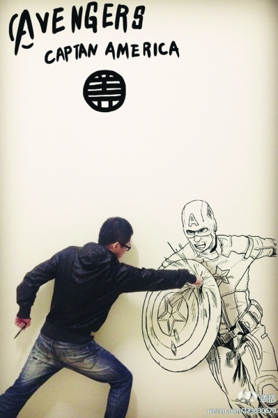 盖括说,虽然画面表现出来的是在墙上,但是事实上并不是画在墙上,而是在绘图板上画的。“我是先在头脑中构思一个场景,幻想一下这个场景下是什么表情,然后摆姿势,拍照。之后再将照片放在绘图板上,将之前头脑中的场景画下来。”盖括对记者说,有时候画得不满意就一遍遍地修改,所以有一些耗费的时间会比较长。