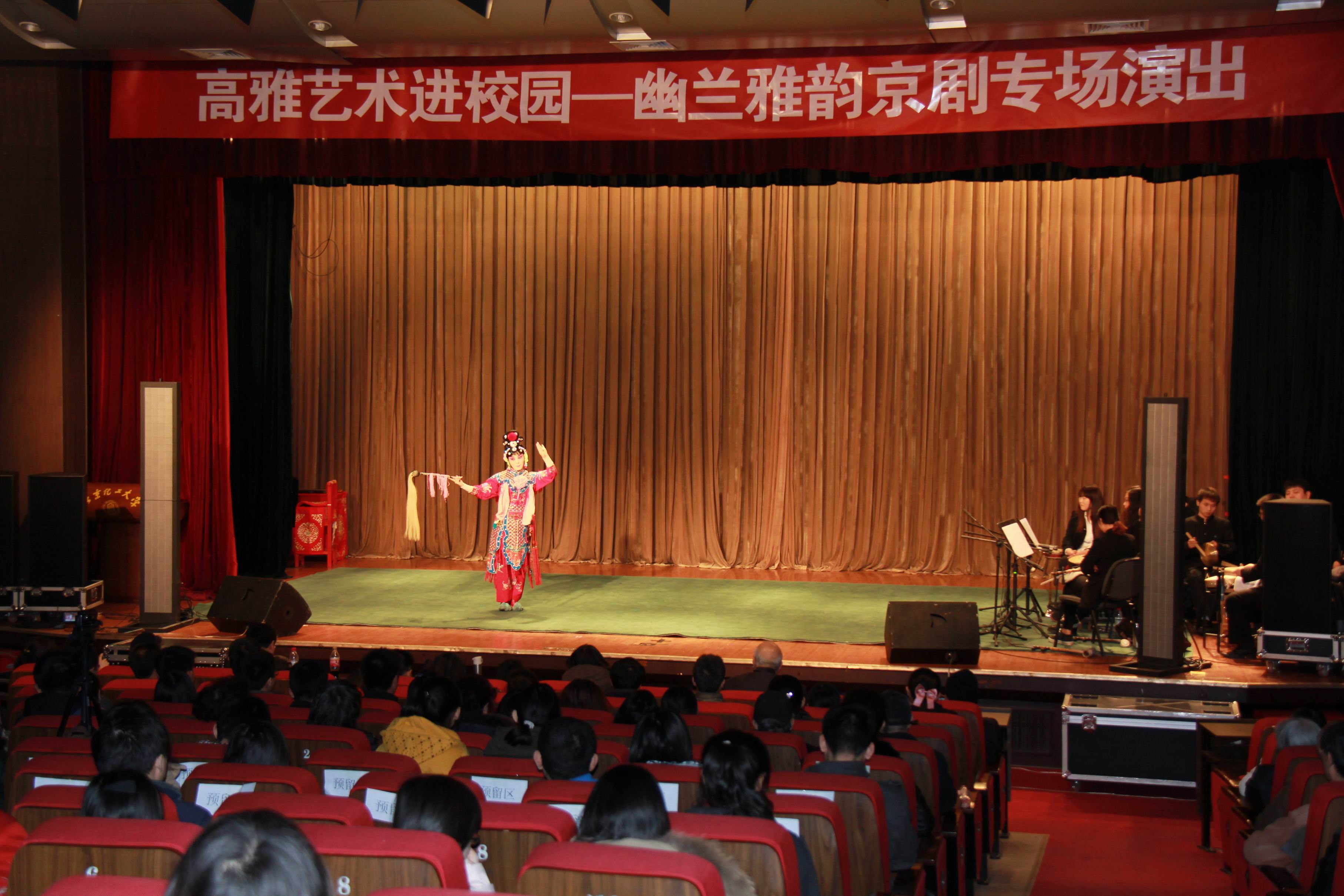 为传承中华优秀文化传统,丰富我校师生课余文化生活。3月9日晚,由校团委、北京幽兰剧团主办,校学生会承办的“高雅艺术进校园——幽兰雅韵京剧专场演出”在我校科学会堂举行。