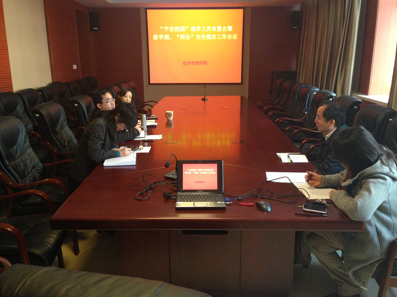 3月5日上午,经济管理学院在化纤楼207会议室召开“平安校园”迎评工作布置会暨新学期、“两会”安全稳定工作会议,全体院领导参加会议。