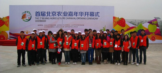 首届北京农业嘉年华由北京市委宣传部、市农委、市科委、市教委、市文化局与昌平区政府共同发起,在昌平区草莓博览园举办。志愿者们身着统一服装,耐心讲解、礼貌引领,在维持秩序、场馆讲解、媒体接待、后勤保障及票务运营等方面都承担了志愿服务工作。志愿者热情的服务和青春的微笑充分展现了我校大学生良好的精神风貌和素质水平,得到了组委会和广大游客的一致认可和好评。