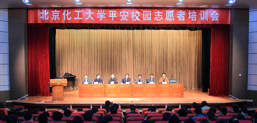 4月18日下午,由保卫处、学生工作办公室在科学会堂共同组织召开北京化工大学“平安校园”志愿者培训会议。会议由“平安校园”创建工作组长、副校长王贵主持,学生工作办公室主任商云龙、后勤服务集团总经理赵恩平、保卫处处长许运清、研究生院副院长许利民、保卫处副处长郭亚臣、学生工作办公室副主任崔春花、保卫处副处长杨明以及东校区“平安校园”学生志愿者350余人参加培训会议。