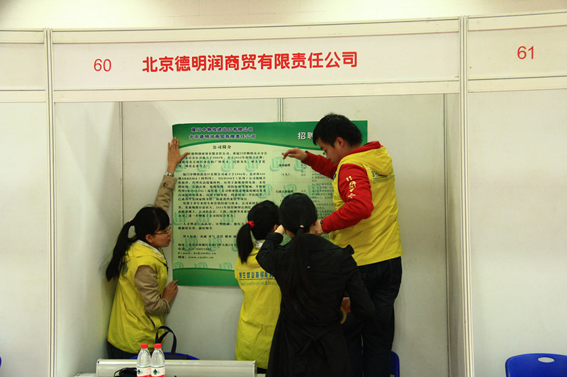 2013年,为了应对严峻的就业形势,我校通过各种渠道千方百计地为毕业生就业搭建平台,为每一个来校招聘单位提供优质服务,促进毕业生就业。为筹备好本次招聘会,我校联合北京市高校毕业生就业指导中心和石化协会中小企业联合会等机构,通过网站、信函、邮件、电话等多种形式联系单位参会。同时,各学院也抓住此次招聘会的机会,发动学院教师联系科技合作单位,利用校友力量邀请校友企业,最终各学院联系近40家单位,其中化学工程学院、材料科学与工程学院分别邀请17家和7家单位参会。各学院的共同努力保证了本次招聘会参会单位的数量和质量,为毕业生求职创造了更多的机会,取得了良好效果。