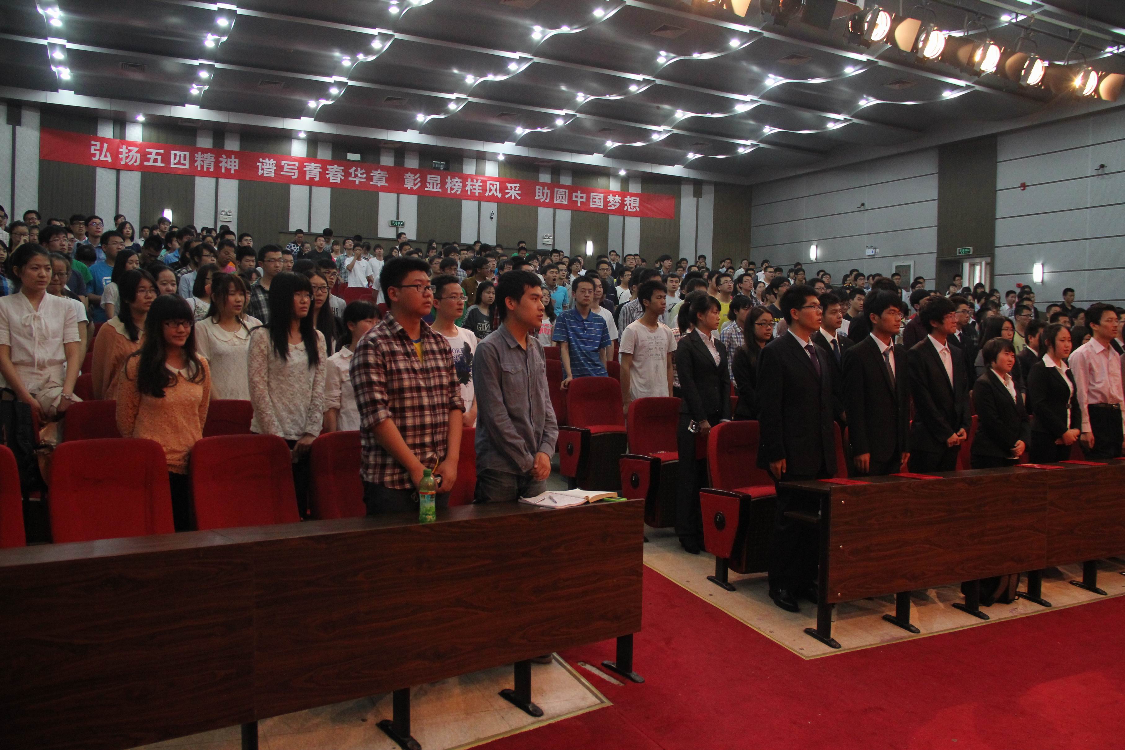 5月8日下午,我校2013年共青团系统“五四”表彰大会暨第二十届“五四”科技文化节启动仪式在科学会堂举行。大会以“弘扬五四精神 谱写青春华章 彰显榜样风采 助圆中国梦想”为主题。校党委副书记兼副校长任新钢出席大会,研究生院常务副院长曹兵、北校区工作办公室副主任于景华、校团委书记邹立娜及各学院学生工作负责人参加会议。共青团系统获奖集体和个人代表、团员代表参加此次大会。