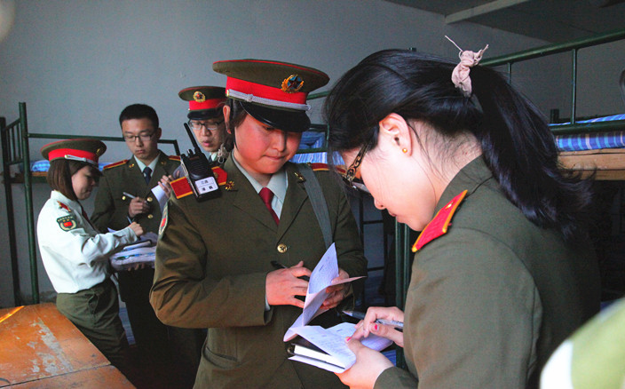 为进一步提高参训学生宿舍内务水平,督促学生严格执行军队纪律、养成良好的生活习惯,展现军训成果。5月10日上午,2012级军训团对各连宿舍开展了随机检查评比,评审团由各连指导员及见习指导员组成。