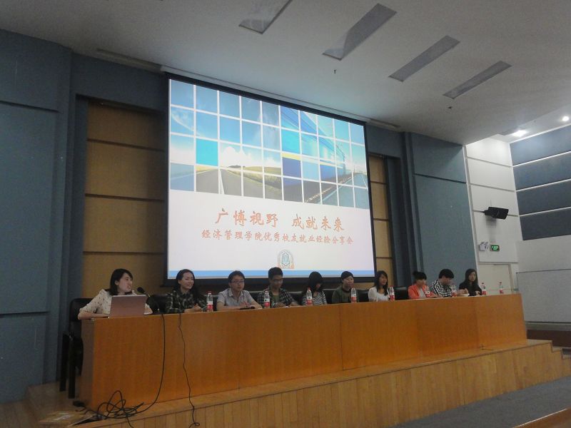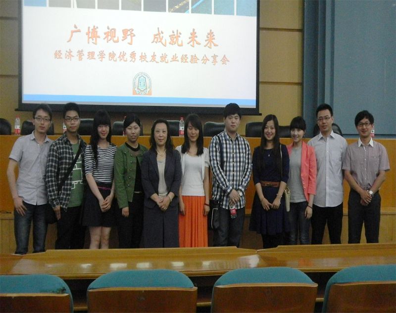 为进一步提升就业工作的质量,加强对学生的就业指导,经济管理学院于5月11日上午在逸夫图书馆学术报告厅举行了以“广博视野,成就未来”为主题的优秀毕业生就业经验分享会。经管学院06级、07级、09级共9名优秀校友及毕业生代表应邀参加交流会,并就他们在求职、工作过程中的一些心得体会与10级同学进行了分享。学院党委副书记张馨、各年级辅导员老师参加会议。