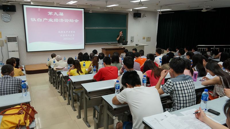 6月23日上午,由北京生产力学会和北京化工大学共同举办的“第九届钛白产业经济论坛”在我校科技大厦召开。中国化工信息中心揭玉斌副主任,中石化北京化工研究院副总工、全国政协委员张明森教授,钛白技术攻关专家朱越生、谭丽珍高工,我校文法学院张健副教授,中国科技战略发展研究院等单位的专家,以及我校部分学院的学生代表参加会议。会议由北京生产力学会吴振绮秘书长及我校经济管理学院陈明副教授共同主持。