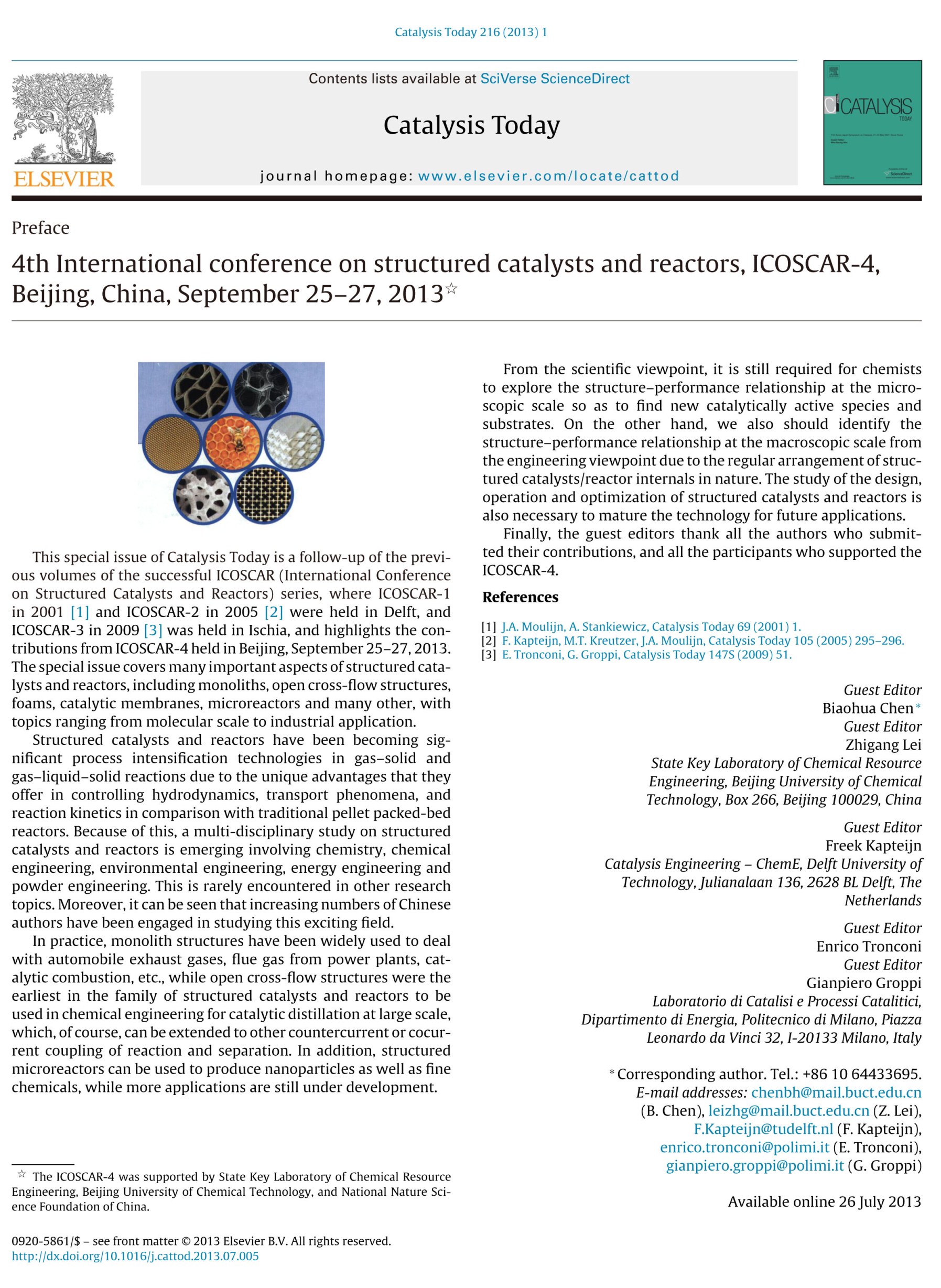 会议部分论文已出版在国际期刊《Catalysis Today》(2013年216卷1-298页),陈标华教授和雷志刚教授等为客座编辑(Guest Editors)。
