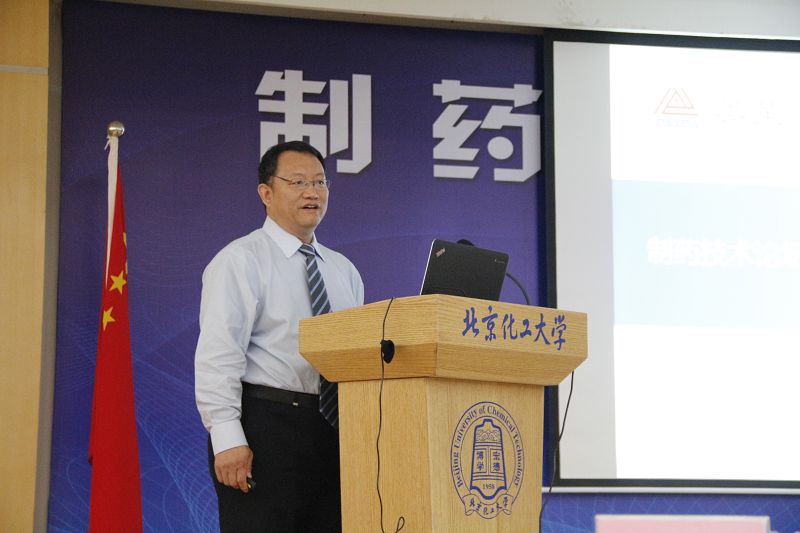 袁其朋院长致辞,他介绍了我校制药工程专业的发展历程和科研成果,欢迎企业针对制药行业技术、制药工程人才培养等方面与我院开展合作与交流,共同为提升我国制药工程行业技术水平、制药工程人才培养质量作出贡献。