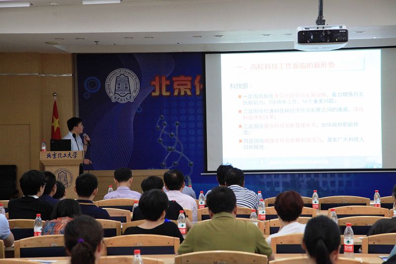 7月11日上午,我校科学技术发展研究院成立大会在逸夫会议中心多功能厅举行。国家自然科学基金委高瑞平副主任、教育部科技司高润生副司长、科技部高新司胡世辉副司长,北京交通大学科技处蔡柏根处长,我校党委书记王芳、校长谭天伟、副校长李显扬、党委副书记兼纪委书记关昌峰、副校长王峰等出席会议。各学院领导、省部级以上机构和团队负责人,中层干部和各学院教师代表近两百人参加了此次会议。会议由副校长兼科学技术发展研究院院长王峰主持。