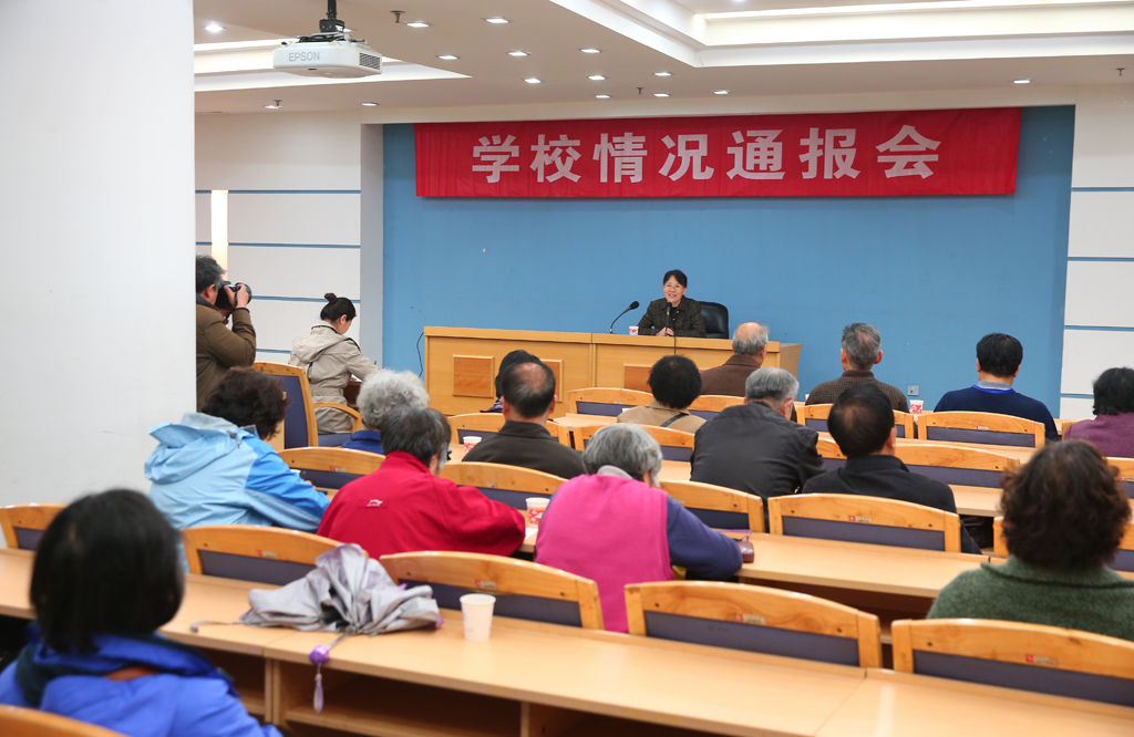 3月31日上午, 2015年离退休人员学校情况通报会在图书馆中心会议室召开,校党委书记王芳向离退休老同志代表通报了学校2014年的发展情况。我校老领导、老教授、老教师等60余名代表参加情况通报会。